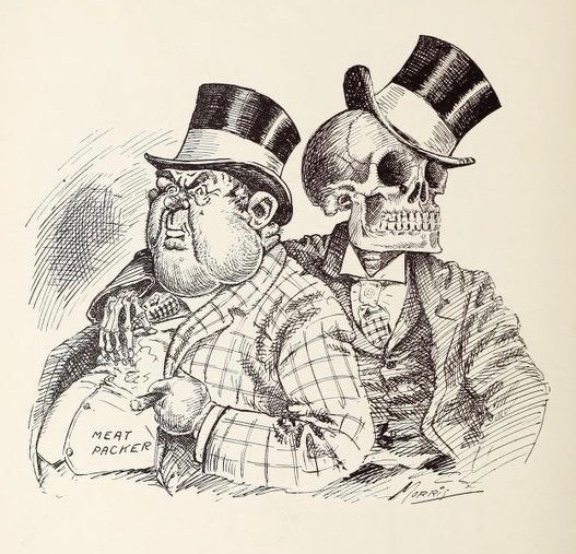 In 1905, Upton Sinclair published The Jungle in monthly installments, intending to draw attention to the poor working conditions and low wages of workers in meat-packing factories. Due to his nauseating descriptions of the conditions of the meat that Americans were consuming, though, Sinclair’s novel became a catalyst for the pure food movement. The American public was horrified to read about the vile state of the food they were eating and called on Congress and President Theodore Roosevelt to do something about it.